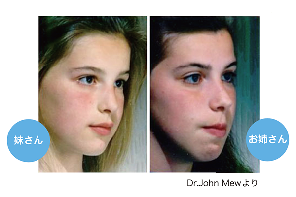 小さい頃はそっくりだった二人。右の姉は、口をぽかんと開けたまま成長しました。左の妹は、口を閉じる意識をして成長しました。